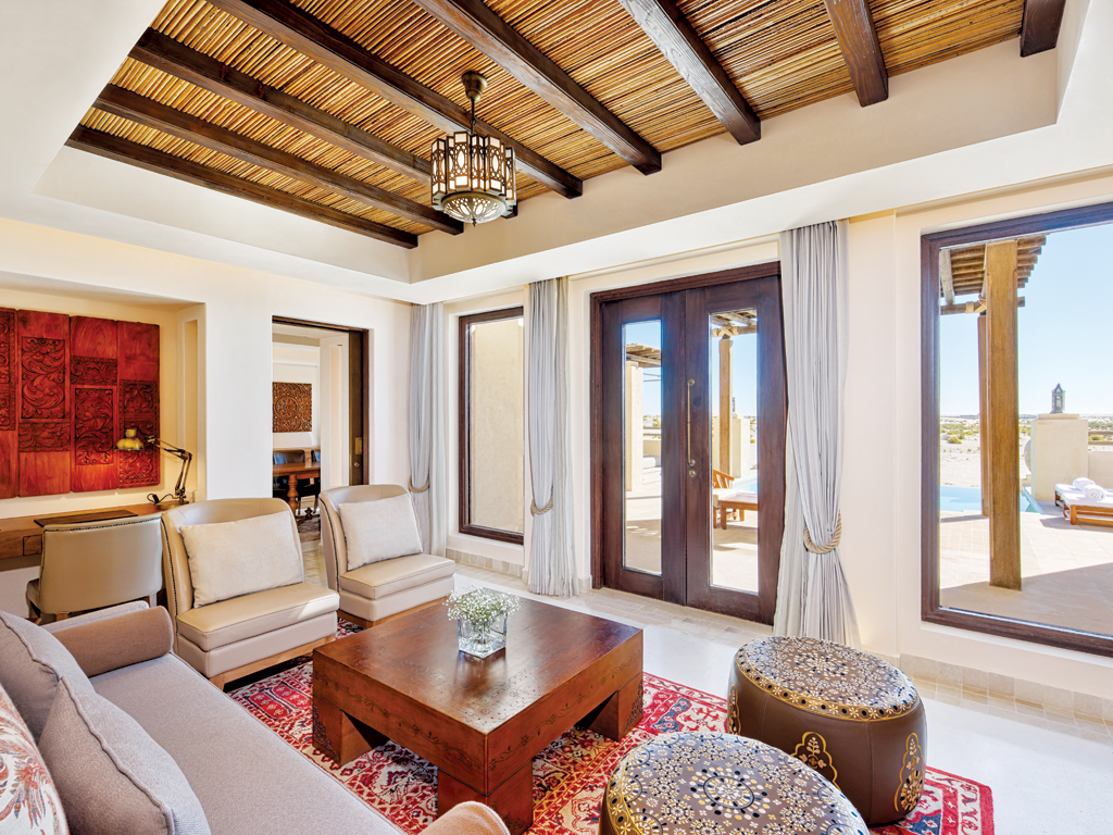 Arabesque elegance is steeped into every nook and corner at Al Wathba Desert Resort & Spa – right from the lobby area and common areas to the accommodations. Their two-bedroom villa comes with a private pool, sheltered day beds and comfortable outdoor seating. Two ensuite balconies overlook the endless dunes, separate living, dining rooms and a fully equipped kitchen ensure big groups and families can enjoy an assortment of settings together. Arabian rugs and ornate wood and metal work lit by lanterns conjure Arabian hospitality. Toiletries from the house of Amouage add an authentic regional accent to the opulence. The resort’s 99 guestrooms and villas offer choice views, including sunset and sunrise vistas of the rolling dunes.