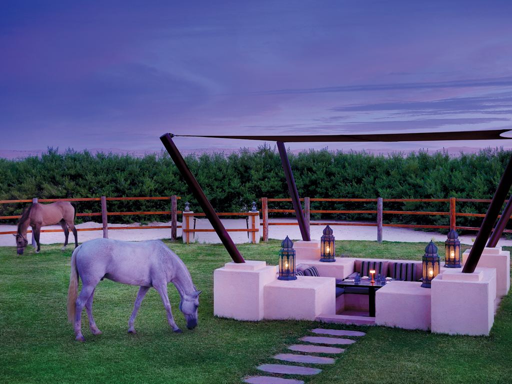 Al Wathba’s dining options match up to its generous Arabian hospitality fame, starting with a delicious breakfast at spread at Bait Al Hanine. Chefs are happy to customise orders; we were charmed by the on-demand bakery items available, a class apart compared to other breakfast spreads in the UAE. The Italian restaurant Terra Secca features all-time Italian favourites, including black truffle. For a truly unique and exhilarating dining experience (and to keep the kids in the group happily occupied), choose the al fresco dining option, which is set against a verdant paddock with freely roaming, well-groomed horses. The infinity poolside food and beverage offering, Panache, deserves special mention for bringing ingenuity and joy with an exciting lineup of beverages and quick bites from around the world, served in bento-style boxes. It is also quite busy with a constant bee line of servers leaving the kitchen, their hands full of mojitos, burgers, healthy poke bowls and the odd sorbet.