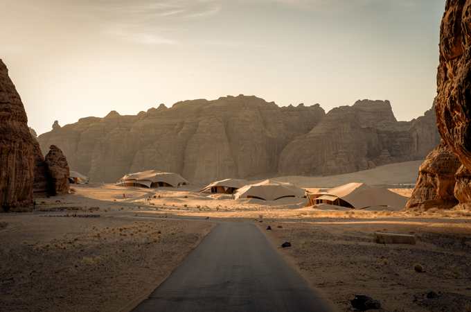 It emphasises slow luxury, shared experiences, and immersive desert wellbeing in AlUla. Saudi Arabia setting. philosophy.